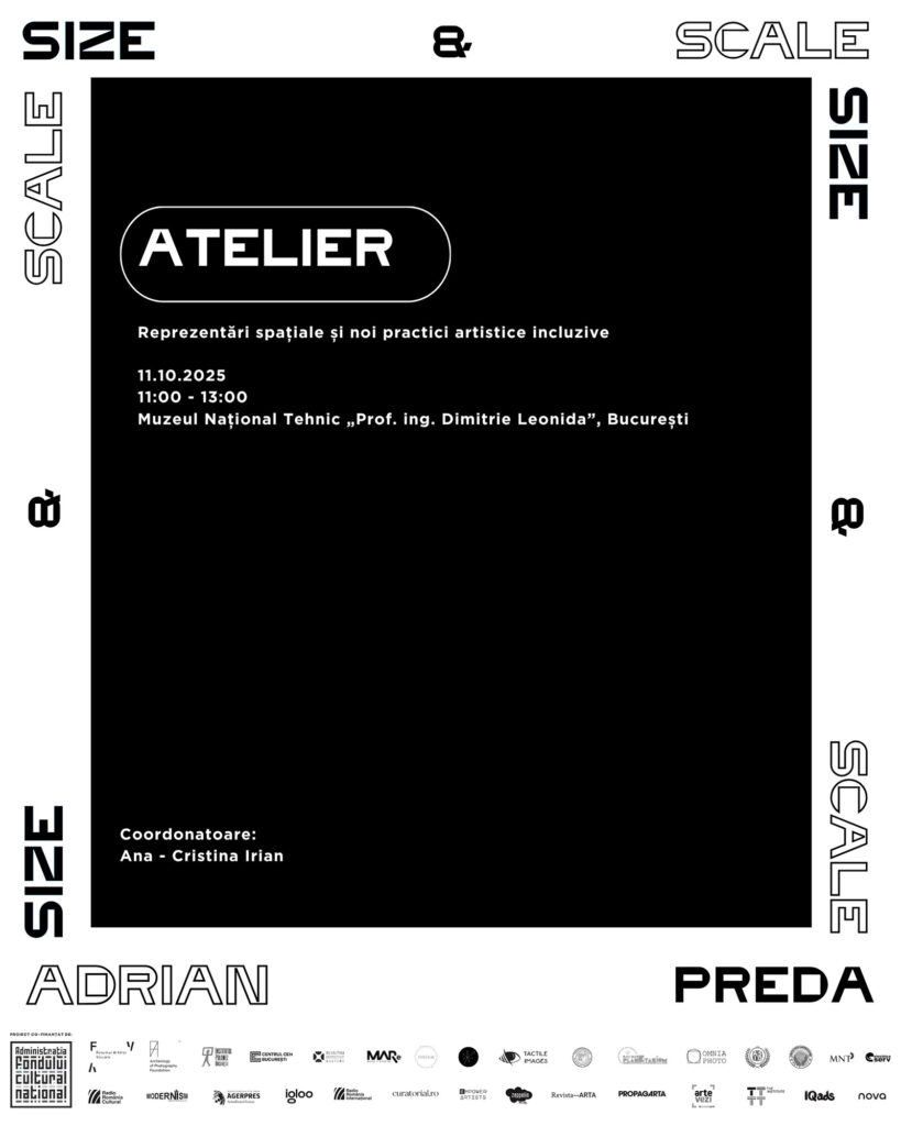 În octombrie 2025, în cadrul expoziției SIZE & SCALE // ADRIAN PREDA, am organizat atelierul de accesibilizare „Reprezentări spațiale și noi practici incluzive”. Evenimentul a marcat finalul unui demers amplu, desfășurat de-a lungul mai multor luni, prin care ne-am propus să explorăm cum poate circula sensul unei lucrări de artă dincolo de vedere – prin spațialitate, tactilitate și interpretare personală.