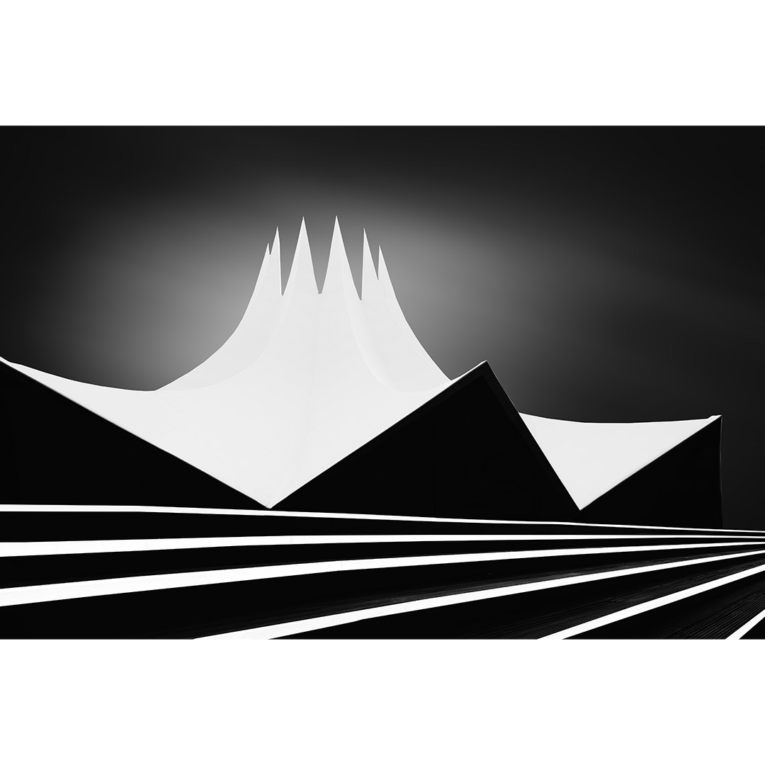 Seria este exclusiv în alb negru, tocmai pentru a scoate culoarea din ecuație și a lăsa în față doar forma și lumina. Arhitectura este subiectul, nu decorul. Fiecare imagine este gândită să funcționeze singură, iar împreună construiesc un traseu clar prin orașele în care am lucrat. Cartea propusă arată cum se schimbă orașul când zgomotul vizual este redus la minim și rămân doar structura și lumina.